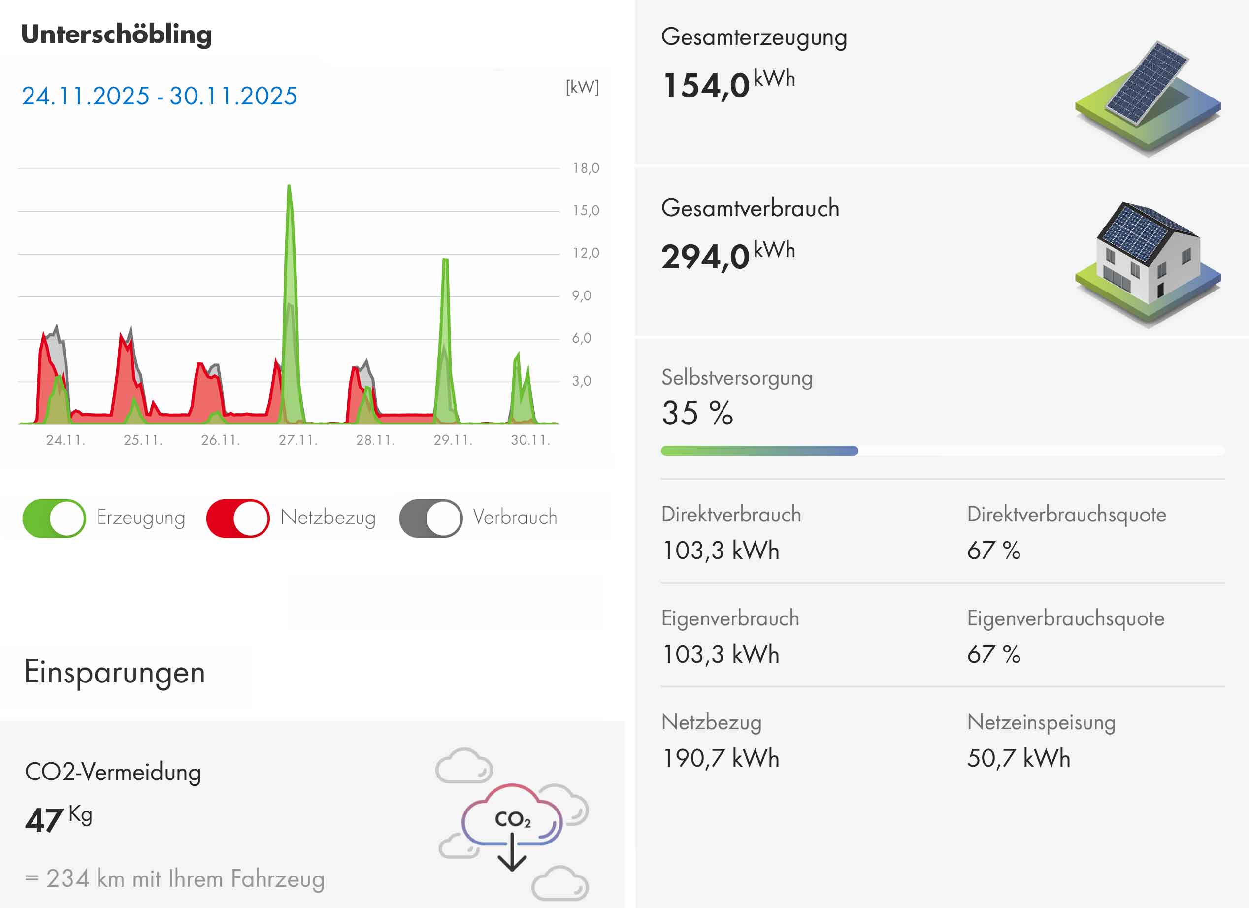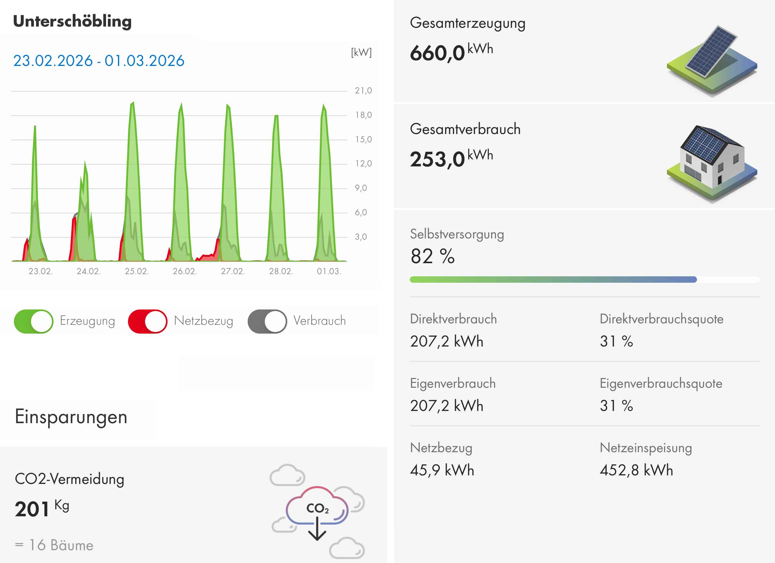Daraus leitet sich entsprechend unsere Autarkiequote ab.