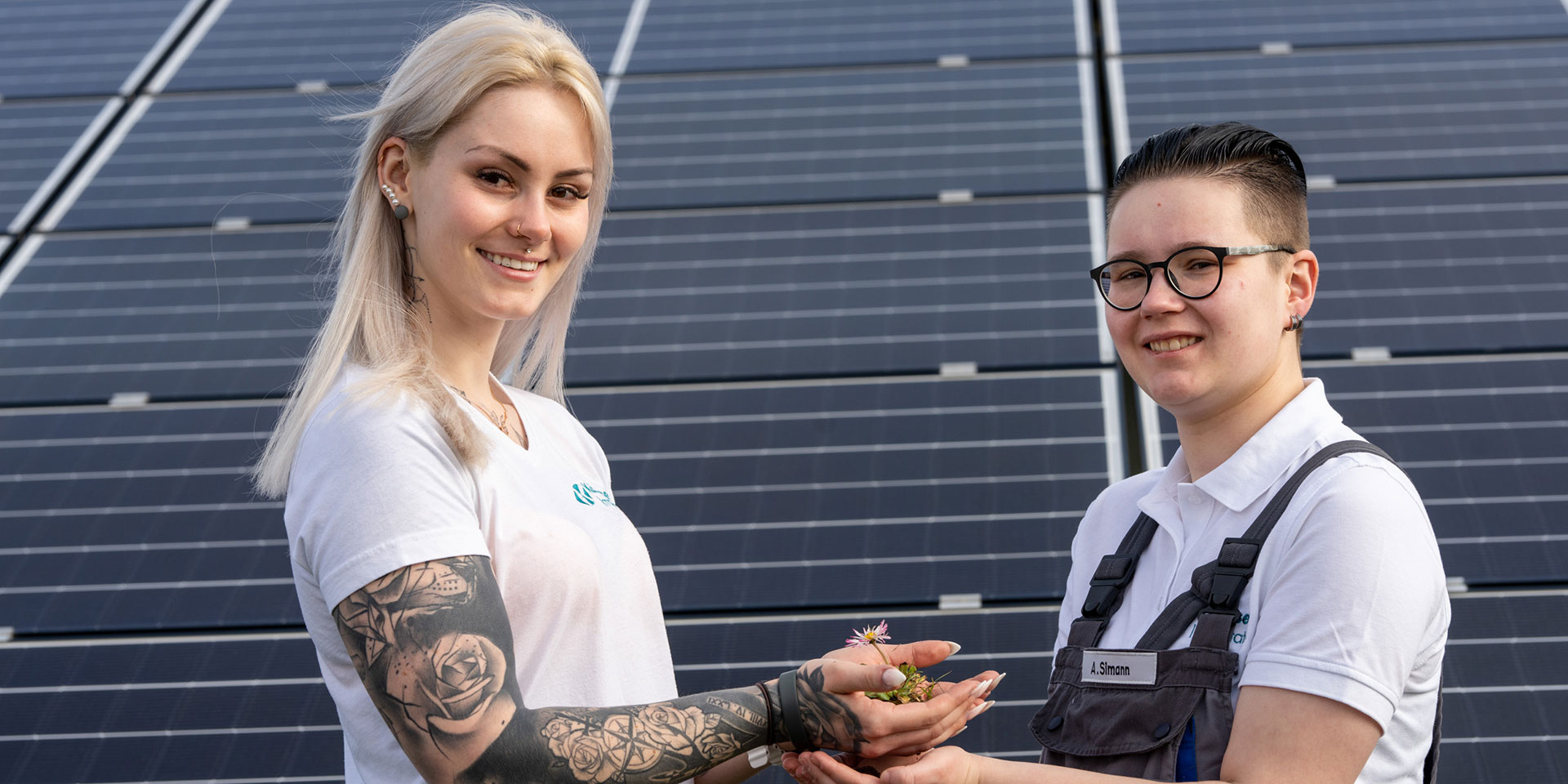 Nach der Fertigstellung des Solarparkes startete sofort das Projekt Biodiversität. In einer groß angelegten Aktion gemeinsam mit den Auszubildenden und den Ausbildern startete die Begrünung der Flächen im Solarpark. Die Auszubildenden pflanzten, brachten Samen aus, und unter den Modulen wurden Unterschlüpfe für Insekten und Kleintiere geschaffen, um eine schnelle Neubesiedlung zu fördern. Schon nach kurzer Zeit, waren erste Ergebnisse sichtbar. Bereits im zweiten Jahr haben wir eine größere Artenvielfalt als zuvor auf der Fläche zu verzeichnen.