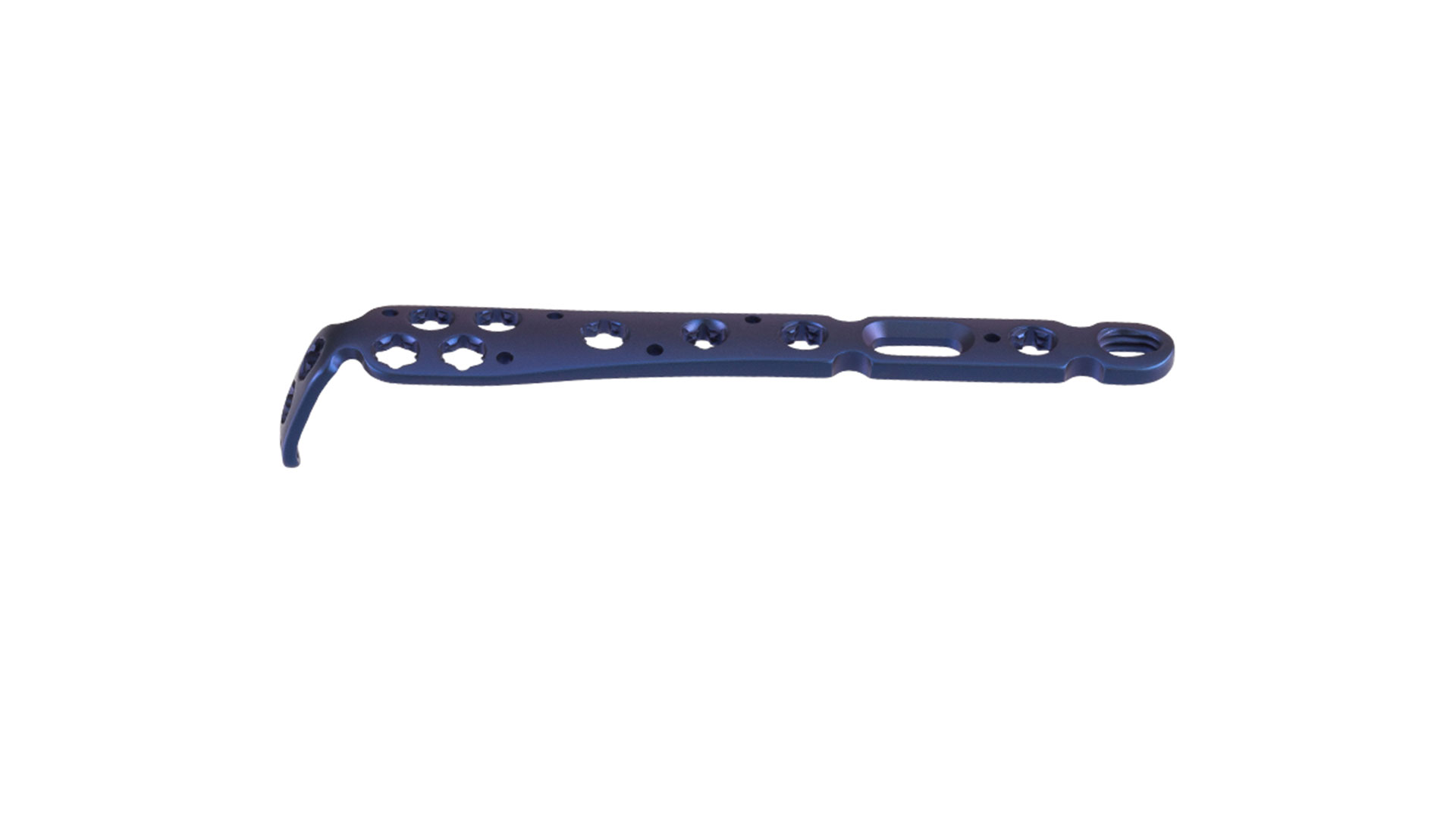 - Two Ø 1.5 mm holes either for temporary fixation of the plate or to hold suture material, to fix smaller transosseous fragments