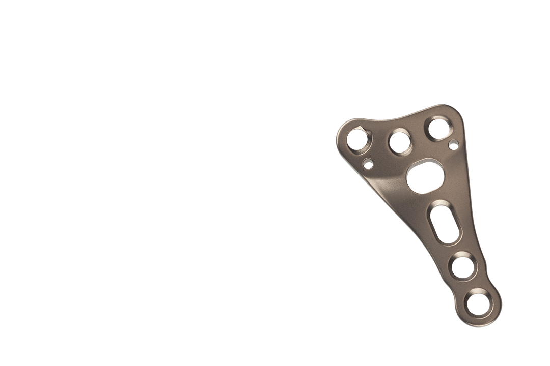 The “Classic” had 3 holes in the head area and was available in angle-stable and variable angle-stable versions. The further development “Vario” had 3 connected holes for screws in the head area. Our “Minor” also had 3 holes in the head area, but a narrower head width. It was also available in angle-stable and variable angle-stable versions. “Quadro” convinced with 4 holes in the head area for better fracture care. And the last development in the family of radius plates 3.5 was the “Twin”. It had 2 rows with a total of 5 holes in the head area.