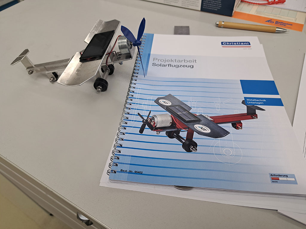 Das Ausbildungszentrum von Königsee Implantate GmbH hat erneut Grund zur Freude, denn die Ergebnisse des Projekts „Solarflugzeug mit Funktion“ für das erste Lehrjahr sind beeindruckend. Die beiden Auszubildenden, Nicholas Streipert als Zerspaner und Justin Assinner als Mechatroniker, haben seit September intensiv an diesem Projekt gearbeitet und ihre Handfertigkeiten auf vielfältige Weise vertieft.