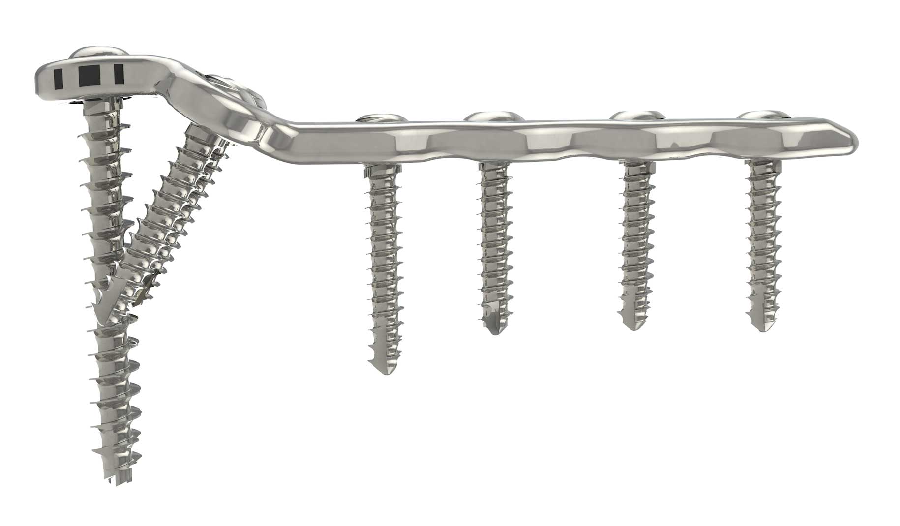 • Los tornillos con estabilidad angular alineados anatómicamente proporcionan una excelente fijación de la placa en el hueso y, con ello, una osteosíntesis estable.