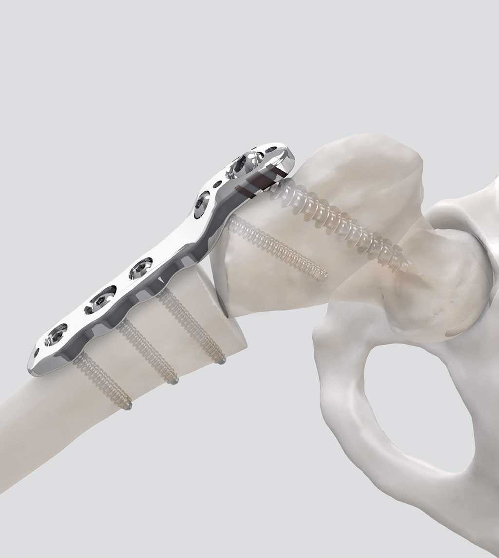 • La placa de conversión femoral proximal WiKo® 3.5/6.0 ha sido desarrollada para la fijación con estabilidad angular de fragmentos óseos tras una osteotomía de varización y/o desrotadora en el extremo coxal del fémur en pacientes pediátricos.