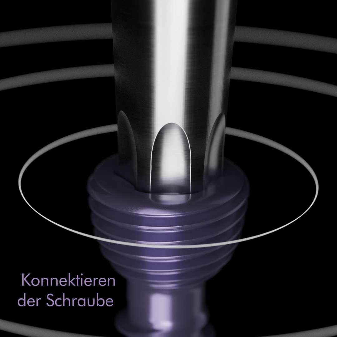Das System TOBI® Drive ermöglicht eine präzise und zuverlässige Verbindung zwischen Schraube und Schraubendreher. Die Verbindung kann durch Aufstecken per Hand oder direkt aus der Halterung im Sieb erfolgen. Nach dem Eindrehen und Verriegeln der Schraube im Implantat, wird der Schraubendreher leicht hin und her bewegt, um die Verbindung zu lösen.